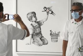 En el momento en que subió, el hospital dijo que Banksy dejó una nota para los trabajadores que decía: “Gracias por todo lo que están haciendo. Espero que esto ilumine un poco el lugar, incluso si solo es en blanco y negro”.