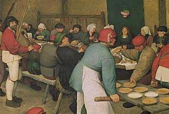 El banquete de boda El banquete de boda (1566-1567) de Pieter Brueghel el Viejo es un claro ejemplo de su capacidad de observación de la naturaleza humana, técnica precisa y estilo fluido. La pintura de género tiene su origen en la antigüedad. Muchas de las escenas pintadas en los muros de las tumbas egipcias representan la vida diaria de los habitantes del antiguo Egipto. Excavaciones en las ciudades de Pompeya y Herculano han sacado a la luz muchas pinturas de género, algunas de ellas de tema erótico. A finales de la edad media este tipo de pinturas reaparecieron, principalmente en calendarios religiosos que forman parte de ilustraciones de manuscritos miniados; los calendarios muestran a la gente ocupada en las actividades propias de cada estación del año.En Italia durante el primer renacimiento, muchas de las pinturas religiosas e históricas de pintores florentinos del siglo XV como Ghirlandaio y Benozzo Gozzoli y los manieristas venecianos como Giorgione y la familia de los Bassano, fueron consideradas pinturas de género porque tanto los fondos y los vestidos que describían, como los modelos que utilizaban, eran de la época.En el siglo XV el pintor flamenco Petrus Christus representó escenas de la vida cotidiana en algunos de sus cuadros religiosos. En los siguientes dos siglos, la pintura de género alcanzó la madurez con la obra de artistas flamencos como Pieter Brueghel el Viejo, David II Teniers y Adriaen Brouwer.