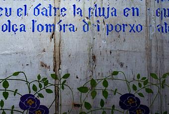 Fotografías de un mural pintado hacia 1.900 en el interior de una casa de estilo modernista. La casa está ahora en ruinas, abandonada desde hace muchos años. El texto en catalán dice: