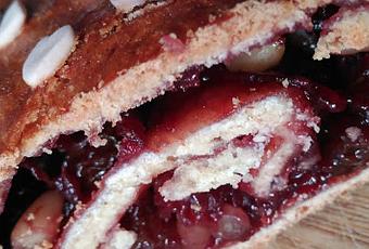 Ingredientes para el relleno: 300 g mermelada de cerezas; 45 g uvitas pasas; 40 g piñones.