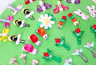 Libélulas, mariposas, abejas, gusanitos, caracoles, rosas y margaritas, son todas preciosas y llamativas pinzas para las cabecitas de nuestras niñas. Como siempre son pinzas cocodrilo con sistema antideslizante, el tamaño apróx. es de 40-45 mm.