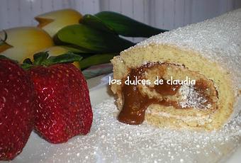 En un paño limpio y húmedo dar vuelta al bizcocho, retirar en papel y enrollar en caliente.Rellenar y enrollar.