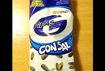 Se trata de un producto de la marca GREFUSA, marca que todos conocemos de sobra e incluso seguro que hemos comprado alguna vez algunos de sus productos. Y es que esta marca tiene muchos tipos de productos, todos ellos de snacks; los famosos gublins, gusanitos, papadeltas y demás productos son comercializados bajo esta marca, sin olvidarnos, claro está, de las famosas y típicas pipas.En cuestión de pipas encontramos de diferentes sabores; con sal, Tijuana, baconeras, y también todas sus versiones en "mix". Estas, con sal, son las de toda la vida, las que saben a pipa, y las que dejan los labios salados al ratito de estar comiéndolas.Son pipas con piel, de olor característica, no demasiado gordas pero si alargadas. La cáscara es lo suficientemente dura como para hacer ruido cuando se parte, y dentro encontramos la pipa pelada, que aunque no está salada, la sal la encontramos recubriendo la cáscara y el sabor se nota y mucho.