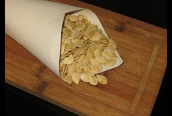 Sacamos las pipas de la calabaza y le quitamos las fibras, este es el paso más engorroso. Luego cogemos papel absorbente y las secamos. Ahora las extendemos en un plato y las ponemos a secar pueden tardar varios días. Les echamos sal de vez en cuando para que vayan absorbiendo la humedad.