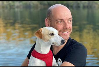 Pipper, el primer perro español «influencer» en turismo, junto a su humano, el periodista Pablo Muñoz Gabilondo.