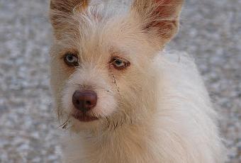 Es de tamaño pequeña y parece jovencita, 1 o 2 años como mucho, tiene unos ojos preciosos, verdes casi blancos y manchados en marrón, puede ser que tenga algo de albina, porque el hocico también lo tiene claro.