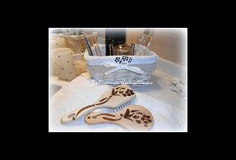 Y También terminado, en la encimera (a la izquierda) de mi baño ...para portar los cepillos pirograbados por mi cónyuge Y ya puestos :)) ...comentaros ...las toallas que veis en las fotos son hechas por mi mama con puntilla incluidaPróximamente haré una publicación con algunas de sus labores para que veáis que manos tiene con las labores ;)