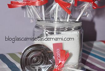 Seguimos con el cumple de Carla. Este año, como ya es “mayor”, quería regalarle a los amigos de clase algo que hubiese hecho ella, por eso, elegimos estas piruletas de chocolate, ya que son muy fáciles de hacer.