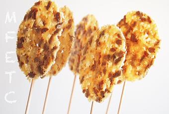 Yo soy un amante de los quesos, todos me gustan, personalmente me gustan más los curados y algo picantes. El parmesano es uno de éstos, está elaborado con leche de vaca desnatada o semi-desnatada. De pasta dura, cocida y prensada, no tiene agujeros y de color paja. Para quién no lo sepa está amparado por una Denominación de Origen Protegida y como curiosidad decir que un Parmesano suele pesar entre 22 y 36 kg.Los usos generales de este queso suelen ser rallado, laminado y gratinado, generalmente en platos de pasta y pizza así como en ensaladas. Pero posee muchísimas más aplicaciones, tantas como imaginación tenga tu cabeza.Hoy vamos a aparcar la imaginación que las piruletas ya están listas así que al lío...