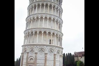 Es el campanario de la catedral de Pisa. Mide 58 metros. Su inclinación se originó al comienzo de su construcción, en el siglo XII. Se tardo en construir dos siglos y el motivo por el que esta inclinada, es el fondo del terreno (aluvial) y sus escaso tres metros de cimientos. Es uno de los monumentos más visitados de Italia, y es un autentico reto subir los 294 escalones, de su escalera espiral, que hay desde la entrada a la cima de la Torre. Sobre todo, porque la espera hasta que entremos es de por lo menos de dos horas... Pero merece la pena pisar por donde pisaba Galileo Galilei, para estudiar las leyes que rigen la caída de los cuerpos.