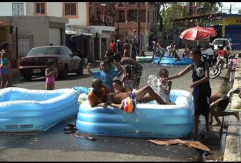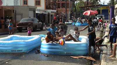 La Romana, Rep. Dominicana.- Las calles de esta ciudad fueron tomadas literalmente por decenas de piscinas plásticas en semana santa.
