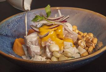Su emblema es el cebiche, un plato hecho a base de pescado macerado en jugo de limón que, en su versión clásica, se sirve con ají, sal y cebolla.