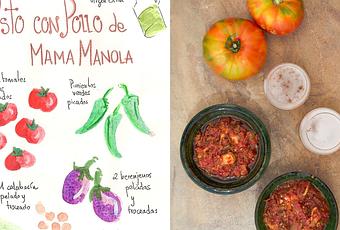 Bueno, vamos a lo que nos gusta; las comiditas de la Mama Manola jijiji. Este verano, si de algo hemos tenido abundancia, ha sido de tomates del huerto ¿y que salida le damos? Pues mermeladas, conservas, pisto, gazpacho, salmorejo, y olé olé y olé. Si es que tenemos una cultura que gira en torno a los tomates y todas sus propiedades. En mi casa, el Pisto con Pollo de la abuela, es especial. No se como lo hace, pero le sale único, así que la hemos grabado para mandarle en vídeo al Iker Jiménez a ver si nos revela el secreto.