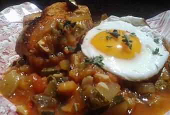 - Aceite de oliva de 1 grado, 6 huevos ecologicos y 6 tostas de pan frito