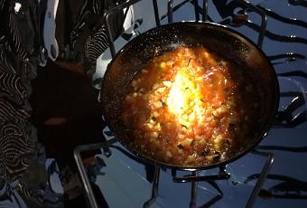 El pisto es un plato económico y fácil de preparar, tradicional de la cocina española que consiste en una fritada de diversas verduras.El auténtico pisto sólo lleva pimientos verdes y rojos, tomates y un poco de calabacín pero las verduras que se emplean suelen variar dependiendo de la zona, de la temporada y de los gustos locales. Suele llevar también cebolla, ajo y calabacín. El secreto para que el pisto quede en su punto es incorporar los ingredientes por etapas, es decir, no agregarlos todos juntos desde el principio en la cazuela.Se suele servir frío o caliente, según la costumbre, a menudo acompañado de huevo frito o por algún embutido. A veces se sirve como tapa cubierto de algunos pedacitos de jamón serrano.Aquí os presento la versión solar de esta saludable y deliciosa receta, elaborada en la cocina solar parabólica.