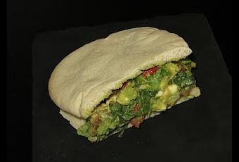 Calentáis los panes de pita y le metéis el relleno y ya están listos para comer.
