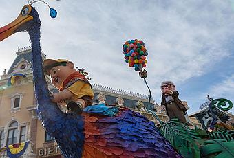 Por primera vez, el desfile “Pixar Play Parade” se abre camino por Disneyland Park, y está siendo liderado por alguien completamente nuevo. El desfile empieza igual que todos los filmes de Pixar: con una aparición de la icónica lámpara de Pixar, estrella del cortometraje “Luxo Jr.”. También, un nuevo elemento se unen al desfile los personajes del entrañable filme de Pixar, “Up”. El valiente explorador Russell aparecerá junto a Kevin, el colorido pájaro sin plumas. Carl Fredricksen y Dug les siguen a continuación, rodeados de vegetación verde y los pollitos acurrucados, con la casa atada de Carl volando por encima de todos. “Inside Out” también se une a “Pixar Play Parade”, con Joy (Alegría) y Sadness (Tristeza) ubicadas encima de burbujas de recuerdos a todo color, dispuestas a embarcarse en el vagón-cohete de Bing Bong, con el mismísimo Bing Bong animándolas.