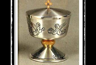 Estimados amigos, la píxide (sí, se trata de un sustantivo de género femenino) es un copón o urna en la cual se guarda y transporta el Santísimo Sacramento (según la tradición cristiana, el Hijo de Dios sacramentado en la hoja redonda y delgada de pan ácimo, que se consagra en la misa y con la que se comulga).