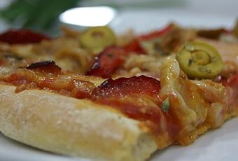 Tomate frito 300 gr Queso Mozarella rallado Bacon Champiñon Pimiento rojo Atún Aceitunas verdesElaboración