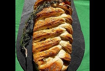 PINCELADA CON HUEVO, Y ESPOLVOREADA DE ORÉGANO, ROMERO Y SEMILLAS DE SÉSAMO TOSTADAS