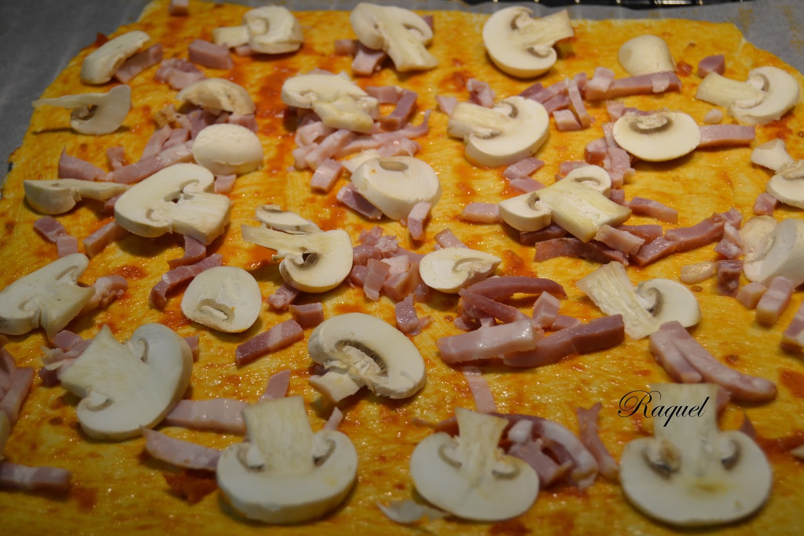 La de hoy es especial porque mi hija a estirado la masa y siguiendo los pasos que le di la preparo ella, se le da bien esto, pinta maneras!!Bueno si os gusta esta pizza ya sabéis poneros con las manos en la masa y a disfrutar de ella.Vamos con la receta.Ingredientes para la masa:
