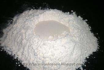 Colocamos la harina sobre la mesa en forma de volcan y agregamos la levadura fermetada.