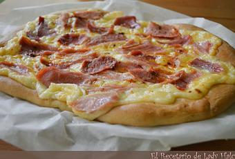 ¿Os pasa lo mismo a vosotros? La verdad es que no sé por que me pasa, supongo que al cambiar de mes los remordimientos por los atracones que me he metido se me olvidan y ya no me siento culpable cuando le hinco el diente a una pizza tan rica y fácil como la que os traigo hoy.Aunque he de confesaros que esta vez he hecho un poquito de trampa y la que os muestro aquí la preparé antes de navidades jeje pero, como ya os he dicho, he tenido que esperar a que se me pase el sentimiento de culpa post-navideño para poder mostrárosla ¡con lo rica que estaba!