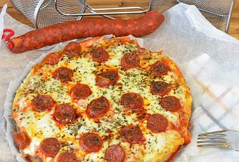 Mi receta de esta pizza con base de patatas fritas lleva chorizo que a nosotros nos gusta picante por el toque que le da, pero vosotros podéis ponerle los ingredientes que queráis, jamón cocido, jamón serrano, salchichón, carne picada...… e incluso una mezcla de todo ummmm que rico.