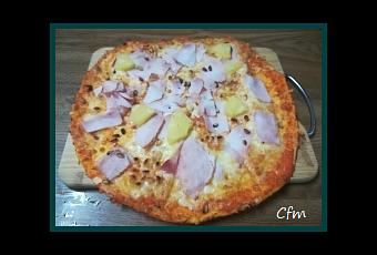 -60 gr de piña natural troceada-100 gr de jamón york troceado-Salsa de tomate (RECETA) -Mozzarella rallada-Orégano-1 masa para pizza