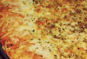 30 gr. aceite oliva220 gr. agua1 sobre de lavadura panaderia 400 gr. harina de fuerzaTomate caseroóregano4 quesos ralladoMozzarela rallada