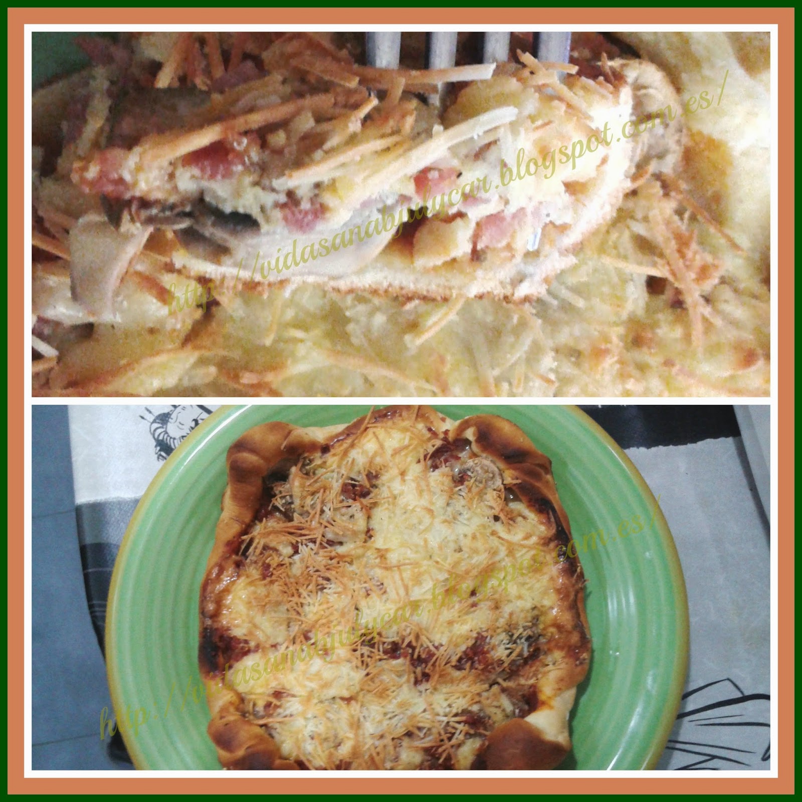 1 lamina de masa fresca con levadura (es del lidl)salsa de tomate de setaschampiñones frescostaquitos de jamón serrano lonchas de queso sante 3%1 huevooreganosalqueso rayado