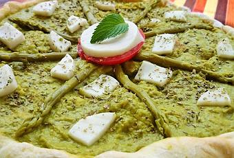 Para la masa de pizza:♥ 125g de harina de espelta♥ 85g de agua templada♥ 1,5 cdta de levadura en polvo♥ 1 cda de aceite de oliva♥ 1 cdta de salPara el relleno:♥ 250g de espárragos trigueros frescos o enlatados♥ 2-3 cdas de nata vegetal♥ queso vegano MozzaRisella♥ pimienta♥ sal