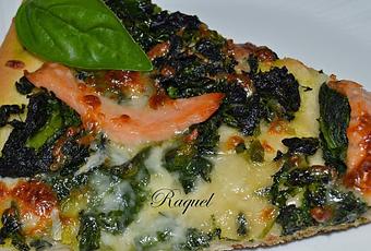 Hoy es viernes y toca pizza hoy os traigo esta nueva versión en el blog, esta lleva ya tiempo pendiente de publicar con las fotos esperando en una carpeta de mi Pc y creo que hoy puede ser perfecta verdad, a quien no le apetece una pizza en fin de semana ? por cierto esta no tiene muchas calorías, es de espinacas y salmón ahumado espero que os guste, a nosotros en casa si nos gusto pero no nos dimos casi cuenta hasta que quedaban dos trozos de que se me había olvidado algo, si sabéis el que ? pues ponerle tomate sobre la base, pero aun así sin el estaba muy rica, si os animáis a hacerla, la podéis hacer con o sin como mas os guste y me lo contais.Ahí va la receta.