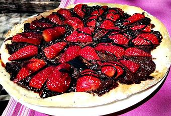 Una vez colocada sobre la superficie que pondremos en el horno, le añadimos la nuttela por toda la base y horneamos, cuando la base adquiera un tono tostadito retiramos del horno y volvemos a poner otra capa de nuttela, y por ultimo cubrimos con las fresas troceadas.Es muy fácil de hacer y a los más pequeños de la casa les encantara.