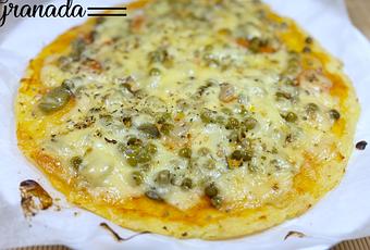 Se hornea a 200⁰ C hasta que empiece a dorar la superficie.Se deja templar para que coja consistencia la base de la pizza y se pueda manipular las porciones para servirlas.Se come enseguida, caliente está mas sabrosa.