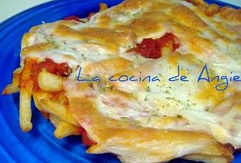- Freír ½ kg. de patatas cortadas en bastones en una sartén con aceite (pueden ser congeladas). Retirar el aceite y, en la misma sartén y sobre las patatas, echar encima media lata de salsa de tomate italiana (Prego o Basilla) y cubrir con queso mozarella rallado. Espolvorear con orégano y gratinar al horno hasta que el queso se derrita.