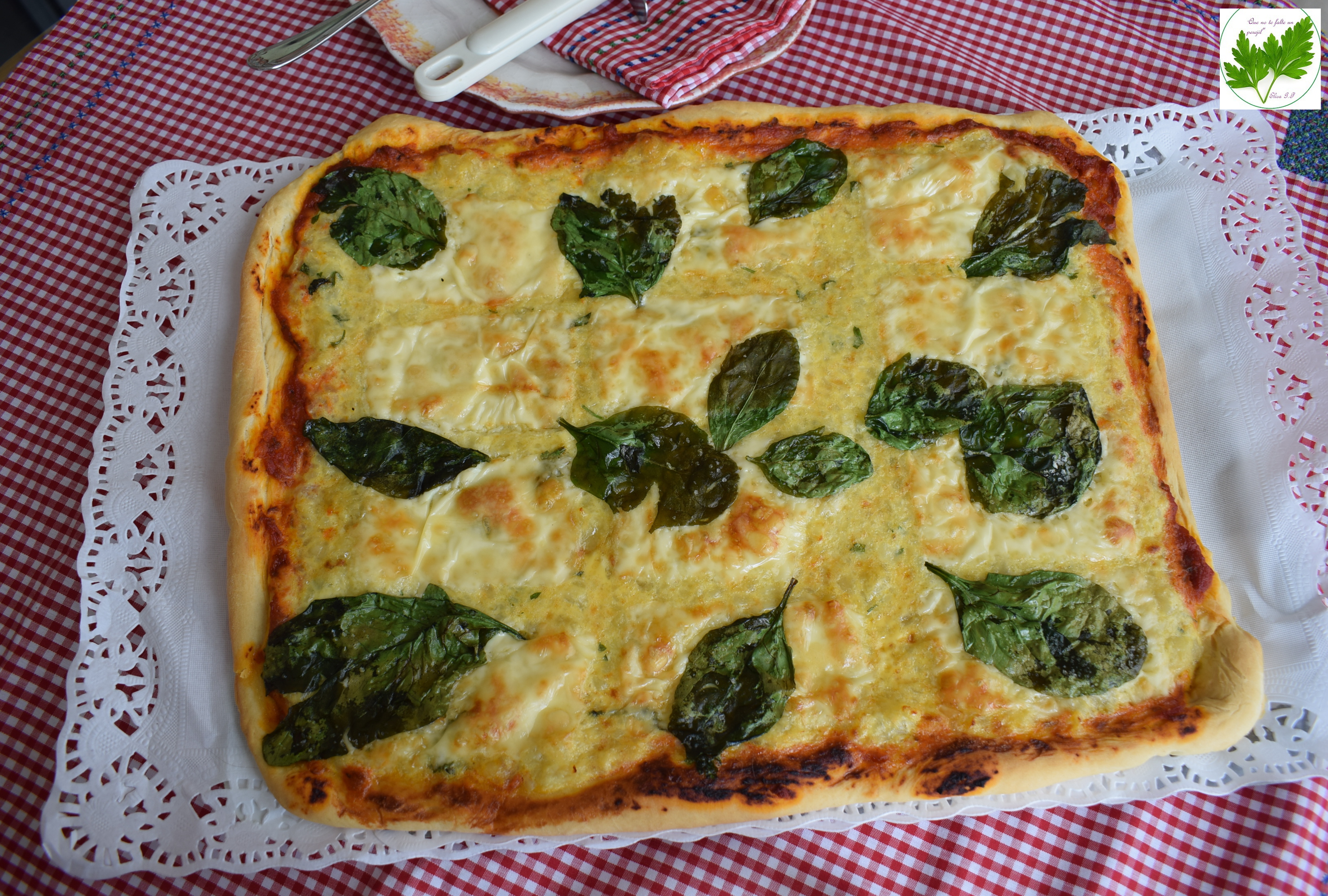 Es nombrar a mi amiga Marisa y rápidamente caigo en la cuenta de lo importante que es reciclar, ella nos invita cada mes a compartir en 1+/-100 Desperdicio 0, aquellas recetas donde hemos utilizado ingredientes que de otra manera irían a la basura. En esta pizza he puesto salsa de tomate sobrante de una receta de pasta y un resto de hojas de espinacas.