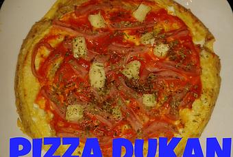 ¿Qué necesitamos?-2 latas de atún al natural.-1 clara de huevo.-1 cs de maicena.-sal de ajo en polvo, orégano o especias al gusto.-queso apto 0 % .-pavo o jamón de york bajo en materia grasa..-salsa de tomate dukan (podéis encontrarlo en hipercor)¿Cómo se hace?Para la masa:Mezclamos el atún, la clara de huevo, la maicena y la sal de ajo. Ponemos en la bandeja del horno papel especial y extendemos la mezcla dándole la forma deseada (cuando más fina más crujiente nos quedará) Introducimos en el horno 15 minutos a 200 Cº.Sacamos y con mucho cuidado despegamos del papel y damos la vuelta.Aprovechamos y ponemos la cobertura: yo he puesto la salsa dukan, trocitos de jamón york ,trocitos de queso 0 % y orégano.Volvemos a meter unos 5-10 minutos hasta que la veamos doradita.