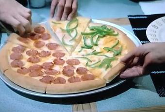 Esta pizza, que se lanza hoy en exclusiva, esta hecha con los mismos ingredientes que la de la película, mitad de pepperoni y mitad de pimientos verdes.