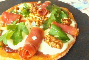 Las preparé con las típicas tortas Inés Rosales,pero también podeis usar unas que han sacado en versión salada. A mi así me ha gustado mucho por el contraste de sabor dulc-salado que es una pasada. La idea de "la cobertura" es del maestro Ettore Cioccia de bavette, un blog que no debeis dejar de visitar. Pero ya sabeis que las pizzas además de ser muy personales tienen un sinfín de sabores e ingredientes.