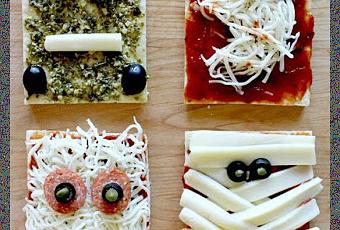 Desde un terrorífico monstruo hecho con base de tomate, mozzarella, unas rodajas de embutido y unas olivas. A una simpática momia, la cual está hecha cortando la mozzarella en tiras entrecruzadas simulando sus harapientos vendajes.. A una figura de un fantasma hecha de queso sobre una base de tomate etc..
