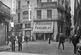 El tramvia ve dela plaça Cucurulla i puja per Portal de l'Àngel. 1914