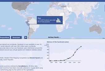 Al estilo de Google Earth, Placebook nos indica estadísticas demográficas dentro de un mapa. Esta herramienta analiza datos del uso de la red social Facebook por países.