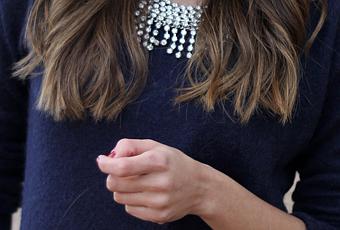 Últimamente, uso muchísimo más pantalones de los que usaba antes. Los pantalones que os enseño hoy con estampado escocés, me parecen súper originales, y creo que quedan genial con zapatos rojos. .En esta ocasión, me los puse con un jersey básico azul marino. Me encantan como quedan los jersey básicos con maxi-collares.