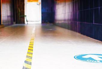 - Al entrar al centro, proceder a la desinfección de calzado mediante alfombras con desinfectante.