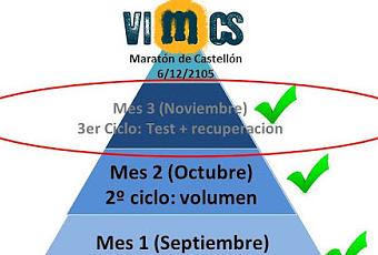Resumen del tercer mes de entrenamientos para la maratón de Castellón. Objetivo: sub 4 horas. Este ha sido el último mes, tercer ciclo del plan. Se me ha pasado rápido. Últimas 4 semanas: 2 semanas de entrenamiento fuerte (aunque no se me ha hecho duro) y dos semana de recuperación (incluida esta última que es la propia semana de la maratón). 4 de diciembre de 2015