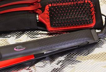 Tras buscar en mil webs de belleza, encontré una de la marca alemana TecTake con muy buena pinta. Es un pack estupendo que me costó... ¡¡18.99€!! (envío incluido). Lo compone la plancha de turmalina y cerámica, un cepillo rojo grande, 4 pinzas rojas ideales para separar los mechones y una bolsa especial térmica, para guardarlo todo y facilitar su transporte.
