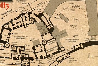 Pero por ahora, y gracias FrankenRol os dejo un plano del castillo-prisión de Colditz, que venia en la caja de los DVDs cuando la BBC comercializo la serie para verla en casa. Muy detallado y con un montón de datos interesantes. Realmente, como dice FrankenRol, con material así, tener material listo para un partida, o tener inspiración para una, es muy fácil.