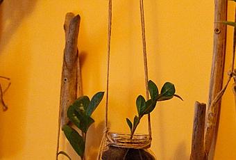 Son ya varios post los que he dedicado a reciclar botes de cristal y transformalos dandoles otra utilidad, y ante el exito que está teniendo por vuestra parte seguire aportando ideas...Hoy os presento esta idea que os dara la oportunidad de decorar una pared, nos ayudaremos de unas ramas de madera que serviran para colgar las macetas en que hemos convertido los botes de cristal, podemos plantar en ellos o llenarlos de tierra y colocar flores o ramas de plantas que aguantaran varios días.Es una idea que podemos aplicar a espacios como la terraza, un patio, una galeria, o incluso un pasillo iluminado con luz natural...algo fácil, rápido, divertido y porqué no original...