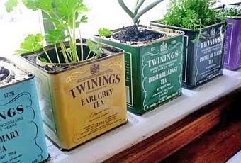 Hoy me gustaría enseñaros esta idea tan bonita y tan sencilla. Se trata de tener vuestro propio surtido de plantas aromáticas (perejil, albahaca, hierbabuena, cilantro...) en un sitio pequeño como el alféizar de la ventana. Las latas de té de colores le dan un aire vintage precioso. Me encanta la idea por lo sencilla que es para poner en práctica y porque podéis animar a los niños a que planten las semillas y vayan viendo el crecimiento de las plantitas. Es una idea de Re-nest que hemos conocido a través de Pinterest.
